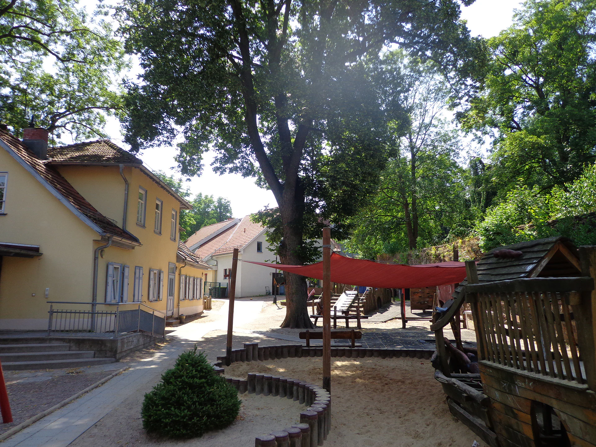 Ausgehend von den individuellen Bedürfnissen begleiten, unterstützen und fördern wir das Kind in seiner Lebenswelt. Große Bäume, Spielhäuser, ein Tunnel und zahlreiche Spielgeräte bieten im Außenbereich verschiedenen Altersgruppen Raum für vielfältige Aktionen. Damit stellen wir den Kindern eine Umgebung bereit, die Lust am Lernen und Ausprobieren weckt.