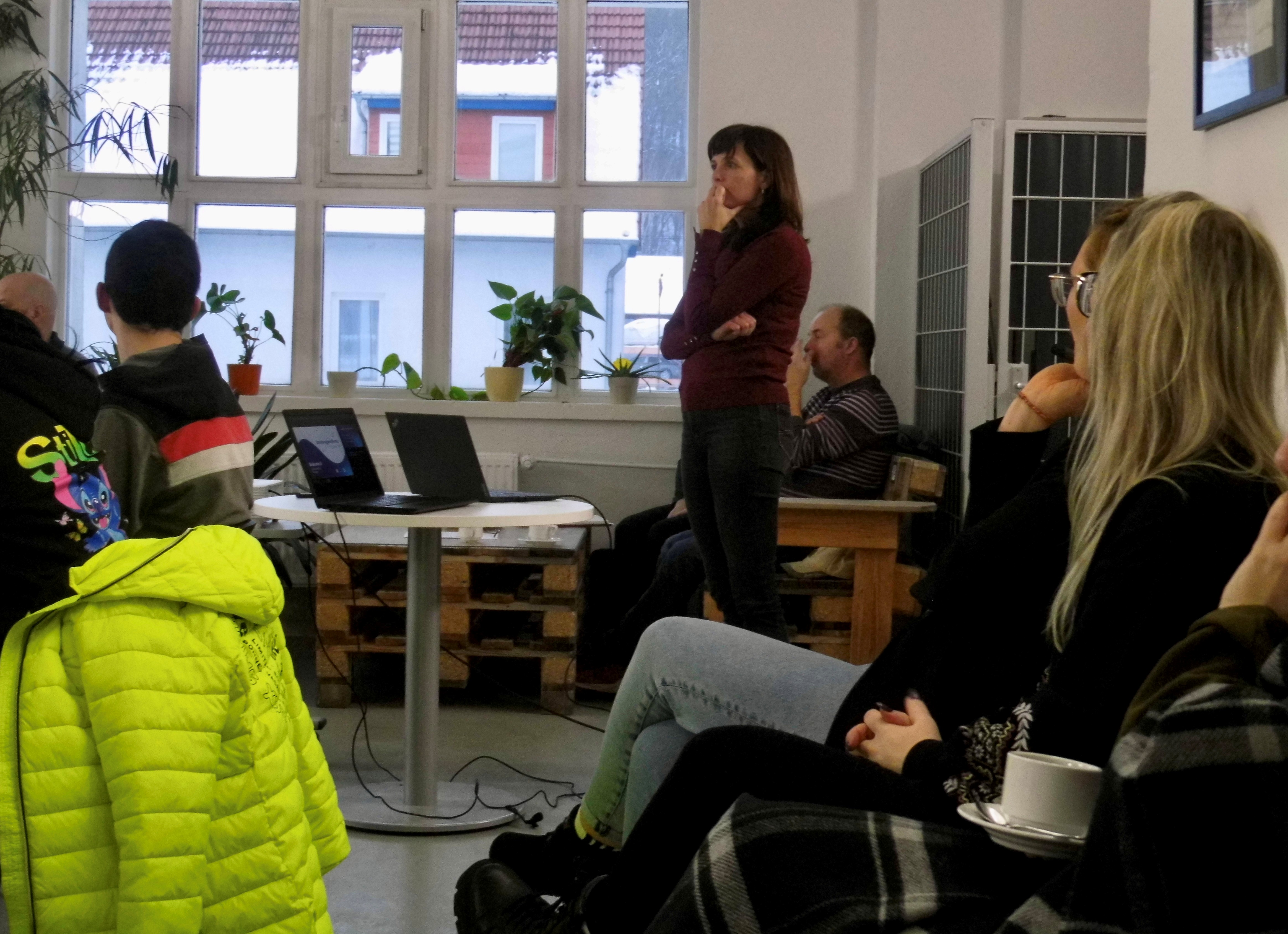Eröffnet wurde die Veranstaltung von Petra Stein, Klassenleiterin unseres Förderzentrums JOHANNES FALK. Julia Fieting stellte als Projektleiterin unseres Berufswegezentrums die unterstützenden Angebote vor: unsere Standorte sowie die Bildungs- und Qualifizierungspfade im Berufswegezentrum und die sich daran anschließenden inklusiven Beschäftigungswege.
